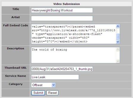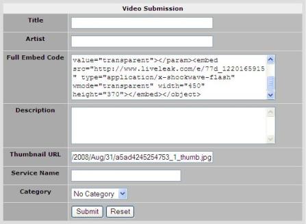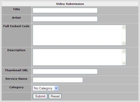 select Manual Submission from the Main Menu under Video Tube, here is what the submission screen looks
